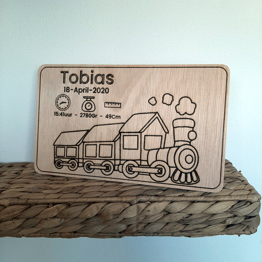 Muizenkindjes - Houten geboortebord Trein - gepersonaliseerd
