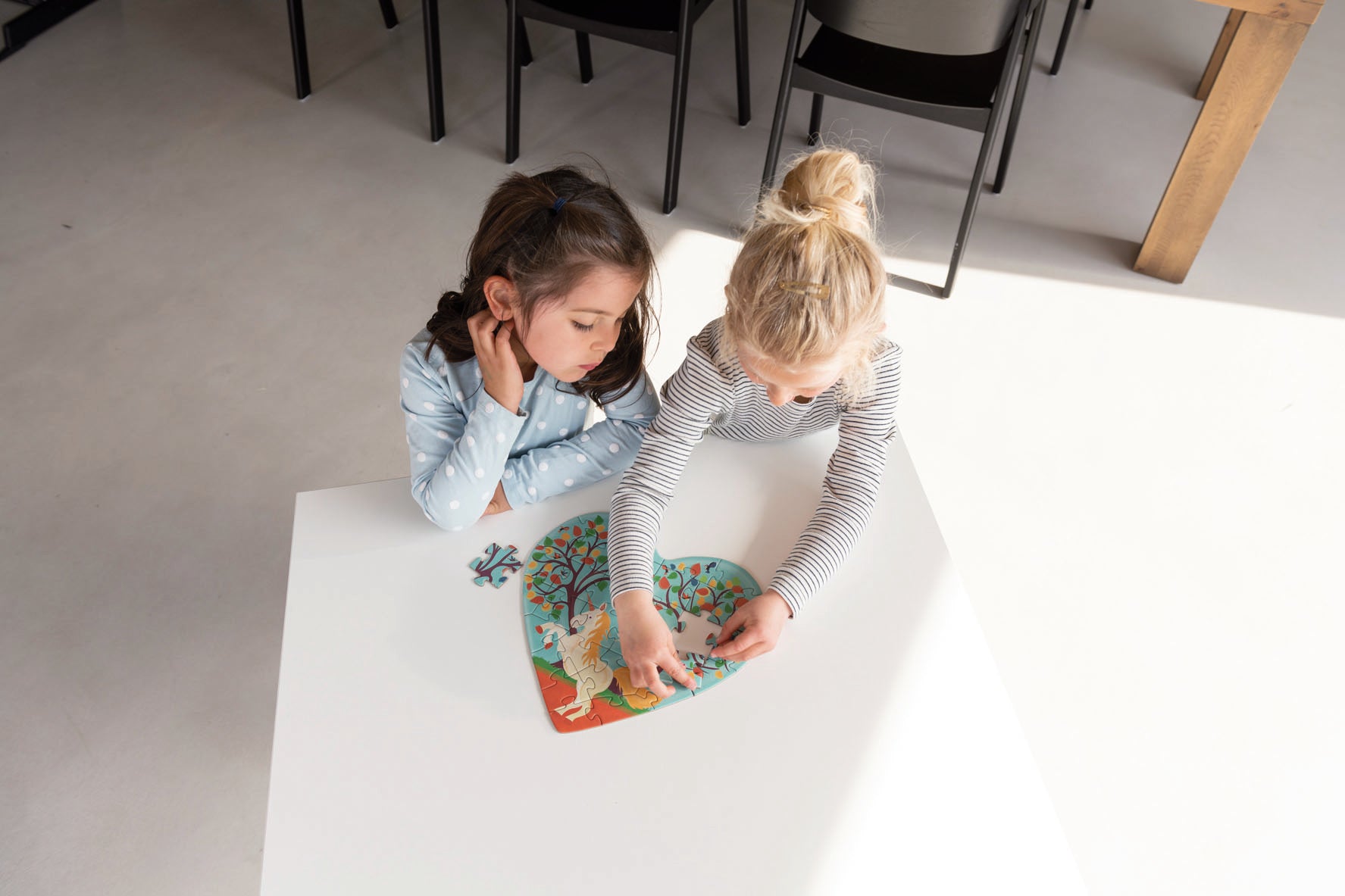 Begeef je in een sprookjeswereld met deze eenhoorn puzzel. De puzzel is mooi gevormd in de vorm van een hart. Hij bestaat uit 30 stukjes voor de wat kleinere puzzelaars.